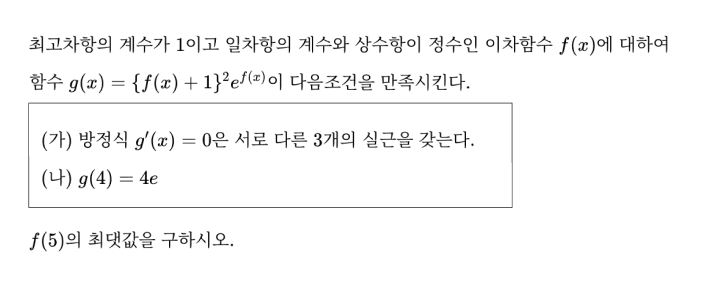 미분가능한 함수 이고 모든 실수 에 대하여 를 만족시킬 때, 의 값을 구하시오.